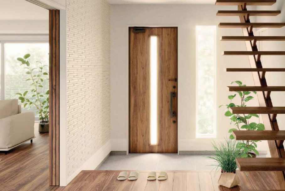 住まいの顔である玄関。触り、開け、閉めるという日々の営みがあり、外に一歩を踏み出す時、家に帰り着いた時、いつも向かい合うことになるドアには、マイホームの顔として、多彩なバリエーションの中から、個性を反映する1枚をお選びいただけます。